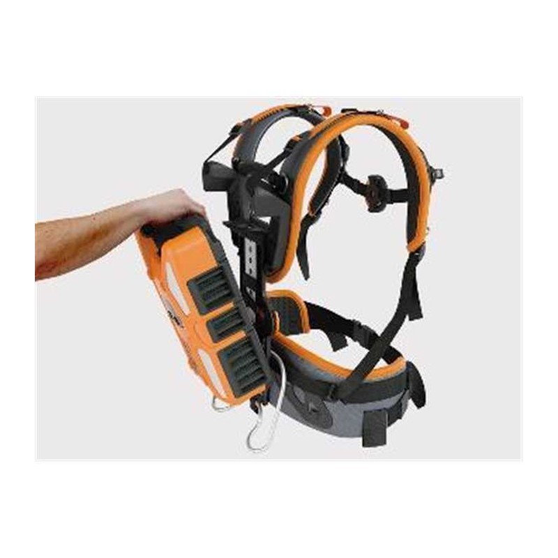 - Réglage dorsal : Pivot rotatif entre les omoplates, conçu pour laisser les épaules libre de tous mouvements, la batterie restant fixe.