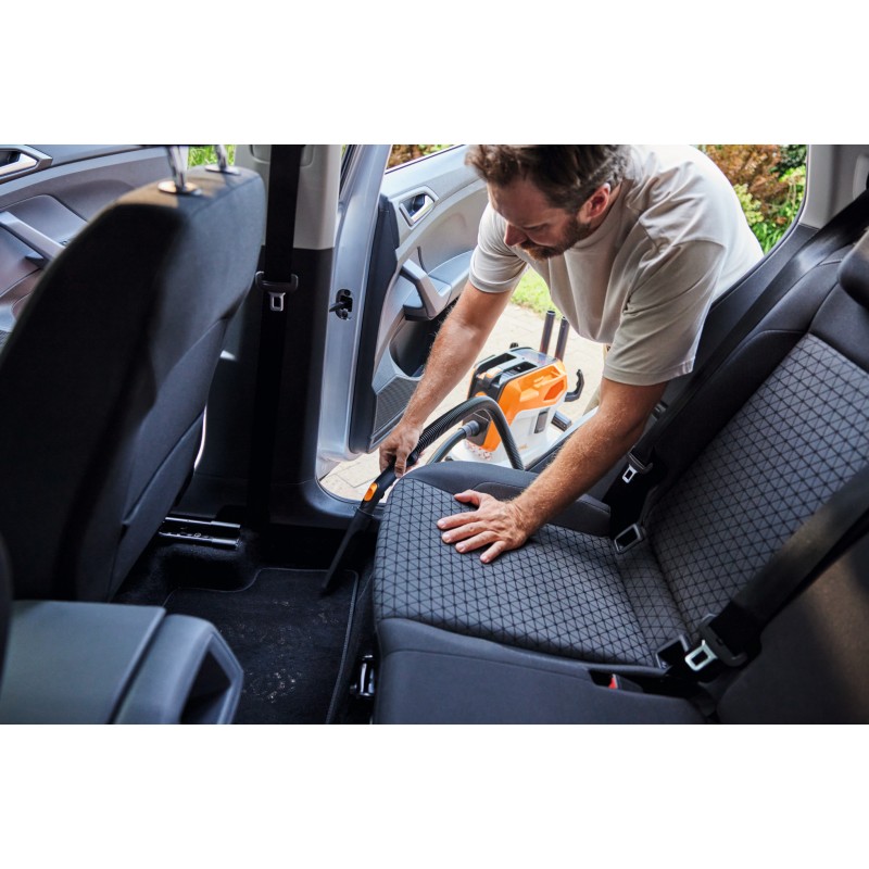 Le SEA 60 est un aspirateur eau et poussière alimenté par batterie qui fait partie du système AK. Il est conçu pour le nettoyage autour de la maison, du garage, de l'intérieur des véhicules et des ateliers. Alimenté par une batterie lithium-ion de 36 volts, il a une puissance d'aspiration élevée et est comparable en puissance à l'aspirateur filaire SE 33 – avec l'avantage d'être sans câble pour un travail plus rapide et plus facile.