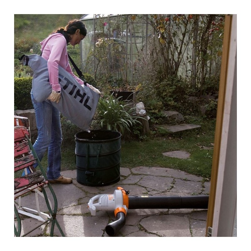 Feuilles mortes, herbes coupées et déchets de taille – qu’en faire ? Voilà une mission pour l’aspiro-souffleur électrique STIHL SHE 71. Silencieux, il avale feuillage et déchets de coupe en un clin d’œil avant de tout broyer.