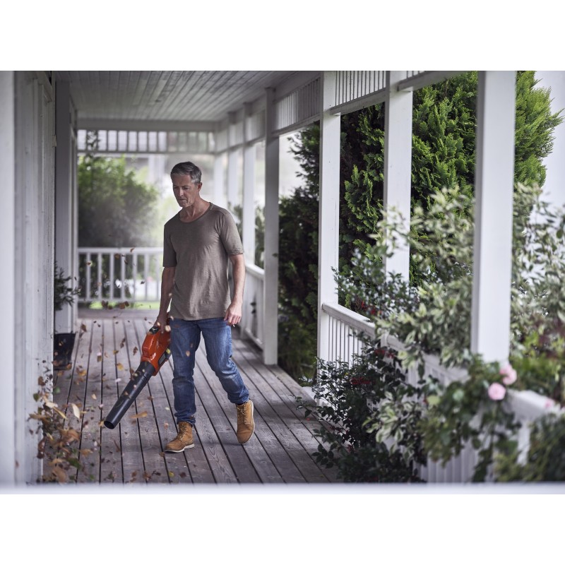 Souffleur à main à batterie à usage domestique, léger et facile à utiliser. Idéal pour les travaux des petits et moyens jardins. Démarrage facilité, accélération rapide, faible poids et trois modes de soufflage pré programmés pour une utilisation en toute simplicité. Sa conception compacte, sa poignée souple, son faible poids et son équilibre parfait vous permettront de travailler efficacement, sans pression ni efforts supplémentaires.