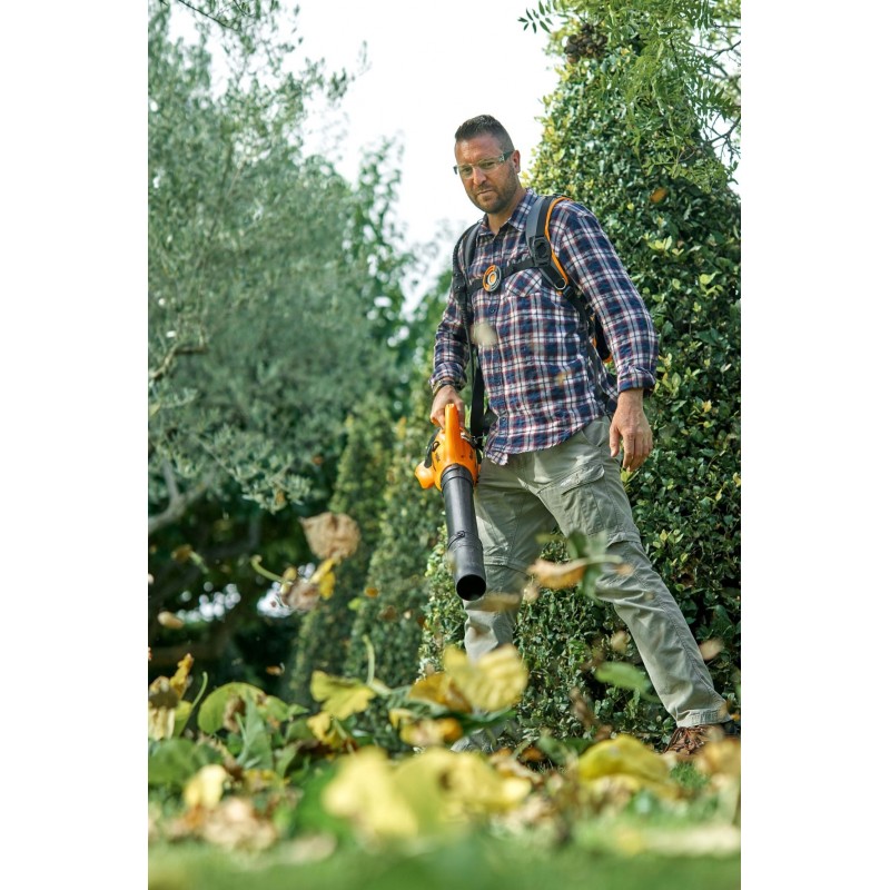 Le système Fast Connector du souffleur à main permet la connexion et la déconnexion rapide de l’outil à la batterie pendant les sessions de travail.