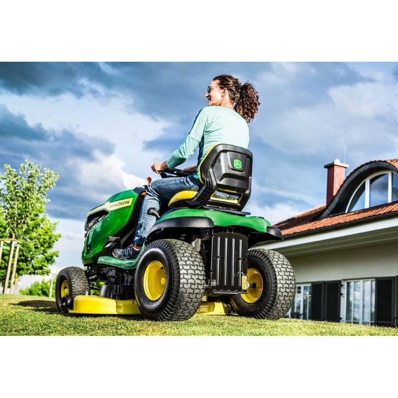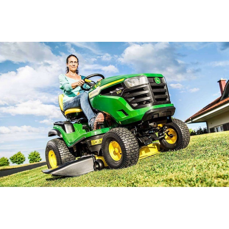 Le X127 incarne fiabilité, durabilité et puissance par chaque aspect de sa conception, y compris son châssis en acier entièrement soudé et son essieu avant en fonte. Un poste de conduite ergonomique, un moteur puissant avec un choix infini de vitesses de déplacement et des phares principaux de haute qualité rendent notre tracteur de jardin X127 plaisant à utiliser et agréable à posséder.