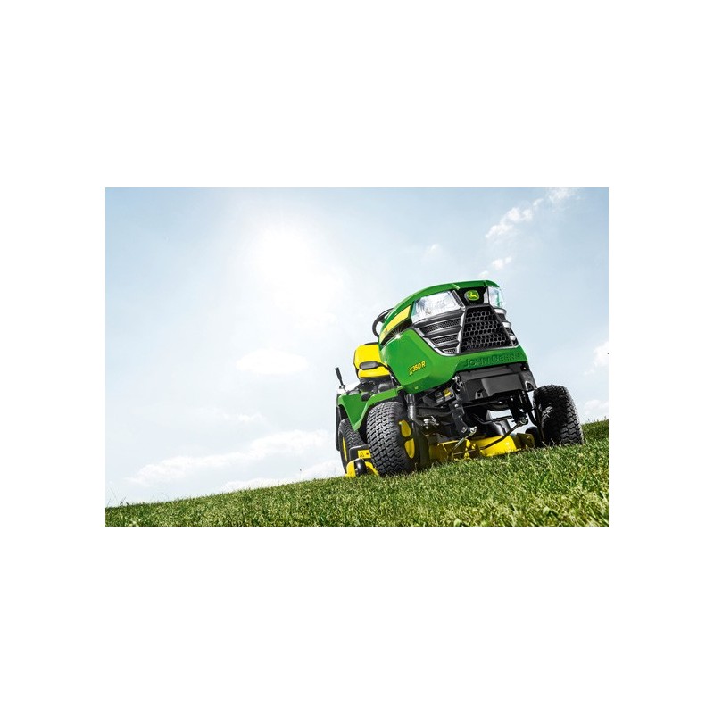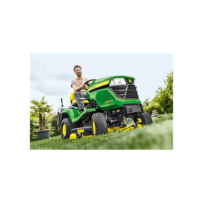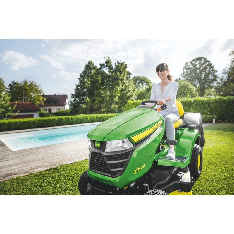 Vous avez besoin d'un tracteur de jardin avec une collecte arrière ? La X350R ajoute cette fonction à notre entrée de gamme abordable sans superflu dans le segment des tracteurs de jardin. Vous apprécierez également la console moderne épurée rappelant une voiture, les commandes à la disposition ergonomique et les pédales de contrôle de la transmission hydrostatique Twin Touch™ faciles à utiliser. Faites votre choix parmi une gamme d'unités de coupe et adaptez votre X350R à vos besoins spécifiques.
