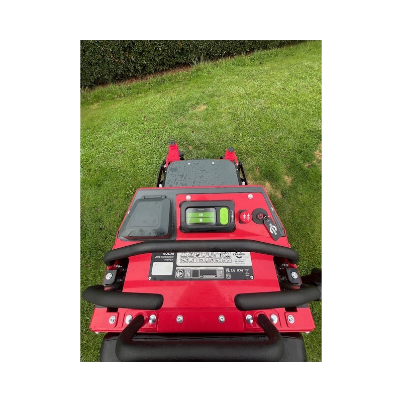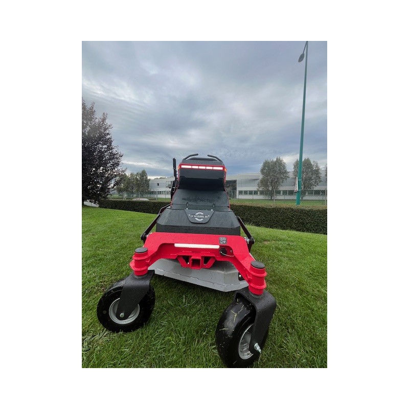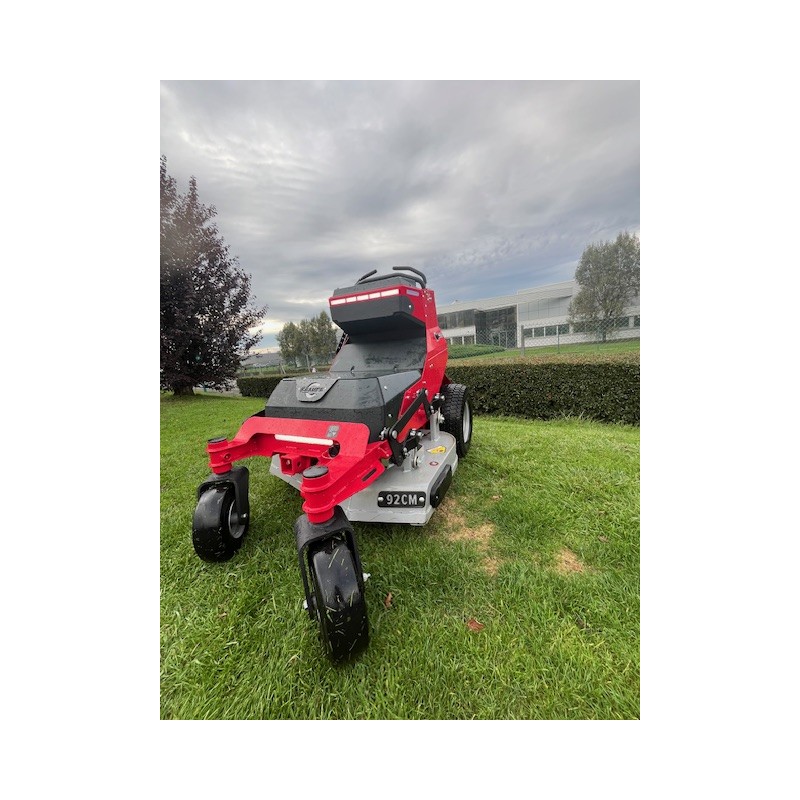 La conception compacte présente un plateau de coupe de 92 cm fabriqué en acier robuste et doté de deux lames, chacune entraînée par un moteur Brushless sans balais de 1,8 kW. Cette conception facilite l'accès aux passages étroits et permet de descendre rapidement de la machine pour effectuer d'autres tâches.