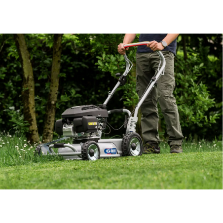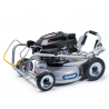 La structure de cette tondeuse est très solide et donc durable. Pour les pelouses particulièrement caillouteuses ou accidentées, elle peut être équipée du CÔNE DE PROTECTION MOTEUR en option