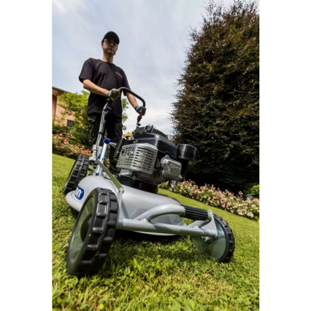 La GRIN PM53A KW, fabriquée sur le châssis éprouvé GRIN, est dotée du très reputé moteur professionnel Kawasaki FJ180V KAI de 179 cm³, permettant la tonte sur des terrains en forte pente, sans problèmes de lubrification. Idéale pour un entretien professionnel, cette tondeuse donne le meilleur d’elle-même dans les situations difficiles. Les utilisateurs sont étonnés par sa capacité de pulvérisation y compris en herbe haute et humide. Sa largeur de coupe de 53 cm en fait une tondeuse adaptée aux grandes surfaces tout en restant très pratique pour les petites surfaces.
