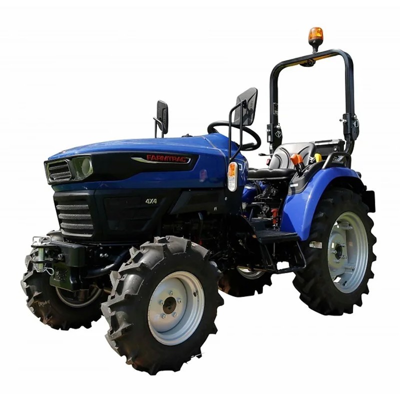 Le tracteur Farmtrac FT26 est un tracteur compact et maniable capable de réaliser tous type de travaux tel que la préparation du sol, l'entretien d'espaces vert et le maraîchage.La transmission hydrostatique à 3 gammes de vitesses offre des plages de vitesses infinies pour toutes les applications. Il peut être équipé de nombreux outils tels que gyrobroyeurs, tondobroyeurs, tondeuses, rotavators, remorques, bennes…Son homologation route lui confère encore plus de polyvalence et de sécurité pour vous déplacer sur la voie publique.