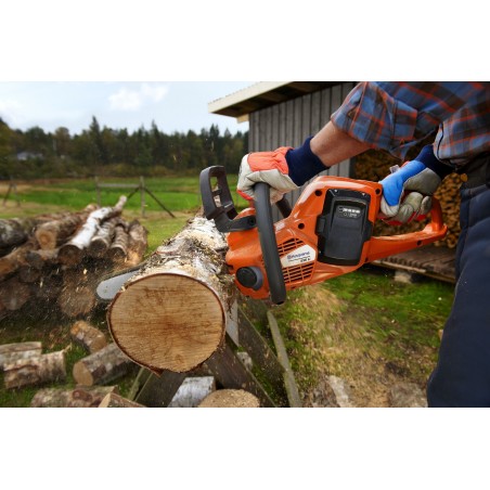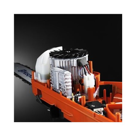 Tronçonneuse légère, silencieuse et extrêmement facile à utiliser. Idéale pour les menuisiers, cultivateurs et autres utilisateurs exigeants. Équipée d'un moteur sans balai (brushless) durable et d'un tendeur de chaîne sans outil. Batteries et chargeur sont à commander séparémen.