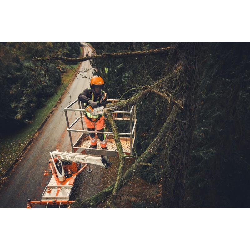 - Utilisation possible sous la pluie : comme tous les appareils à batterie AP SYSTEM conçus pour des applications professionnelles, la tronçonneuse d’élagage MSA 190 T répond à la norme IPX4 et est donc résistante aux projections d’eau. La batterie recommandée AP 200 S est également certifiée IPX4.