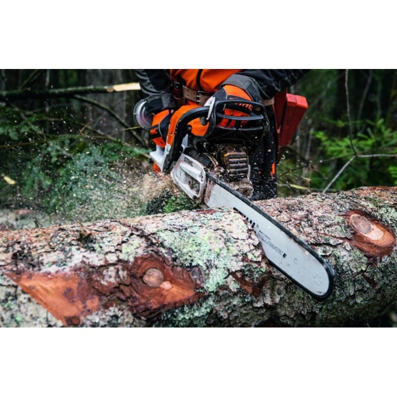Tronçonneuse MS 400 C-M STIHL avec d'excellentes performances de coupe pour une utilisation professionnelle dans les forêts. Idéale pour l'abattage, l'ébranchage et la préparation du bois dans des peuplements de densité moyenne. Système de filtre à air longue durée avec filtre HD2 pour un excellent effet de filtrage. Démarrage facile et fiable, M-Tronic pour des performances de moteur constamment élevées. Écrous sertis sur le couvercle du pignon. Bouchons de réservoir sans outil pour un ravitaillement facile et fiable. La première tronçonneuse à piston en magnésium pour un excellent rapport poids / puissance.